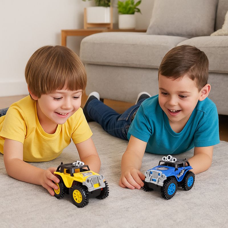 Coleção de Carrinhos a pilha Jeep 4x4 Sobe Parede Vira Cambalhota Bate e Volta Atacado Revenda Lembrancinha de Festa Infantil p/ Sacola Surpresa
