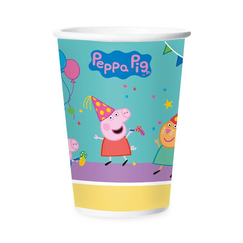 Na Fantasia kids você encontra o tema Peppa Pig, utilize os Copos de papel tema Festa Peppa Pig, na hora servir seus convidados, os Copos festa Peppa Pig pode compor a decoração da mesa, uma dica é dar de lembrancinha com doces, embrulhado no plástico transparente e fita.