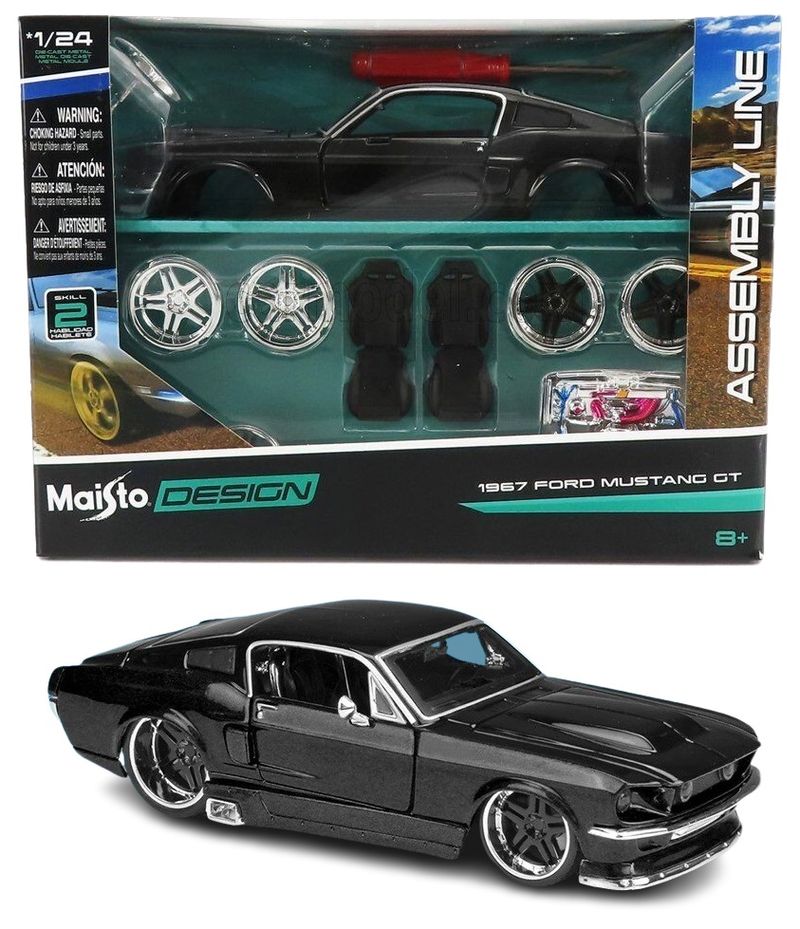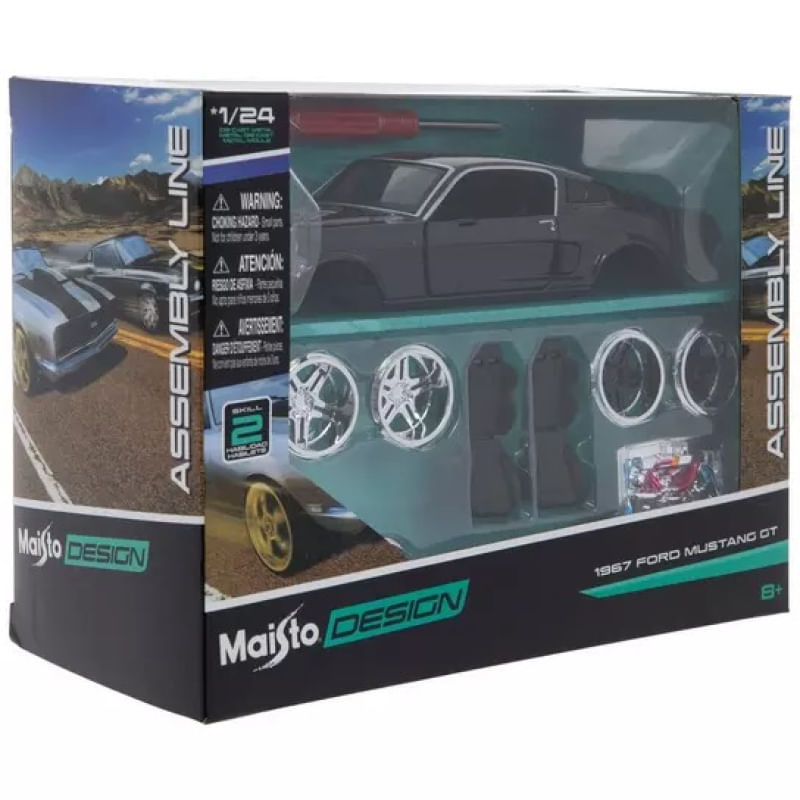 1967 Ford Mustang GTMarca do produto: Maisto.Coleção: Kit em Metal p/ Montar - Assembly LineEscala: 1/24 (aproximadamente 19 cm de comprimento).Pneus de Borracha.Abre as Portas e Capô.Miniatura em Metal com partes de plástico.