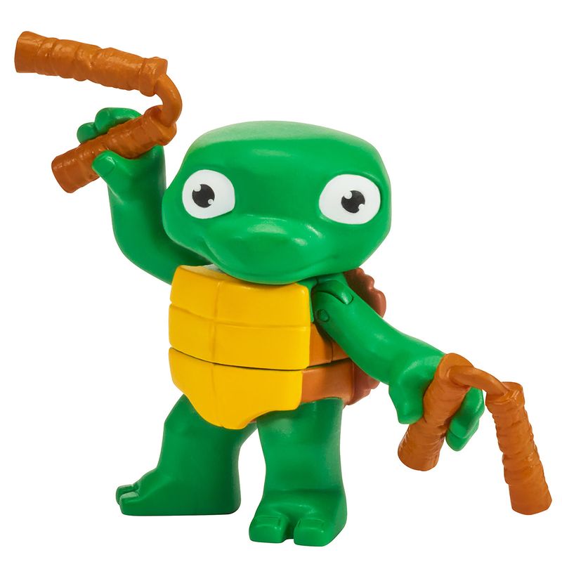 Antes de se tornarem especialistas em ninjutsu, as Tartarugas Ninja eram desajeitadas e estavam sempre causando estragos! Isso, até que seu Sensei, Mestre Splinter, ensinou-os O Caminho do Ninja! Os pequenos aprenderam rapidamente e desenvolveram habilidades incríveis de combate. Este conjunto Turtle Tots vem com 2 Bonecos das Tartarugas Ninja da época de sua infância.