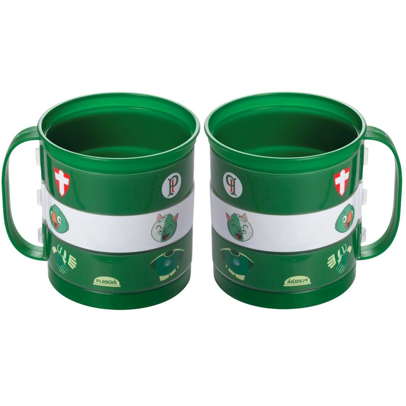 Linda caneca com estampa do Palmeiras com um formato diferente. A Plasútil como sempre inovando, nesta caneca você consegue trocar a faixa e formar as figuras preferidas. Ótima opção de presente, as crianças vão se divertir. A hora do café nunca foi tão legal!!