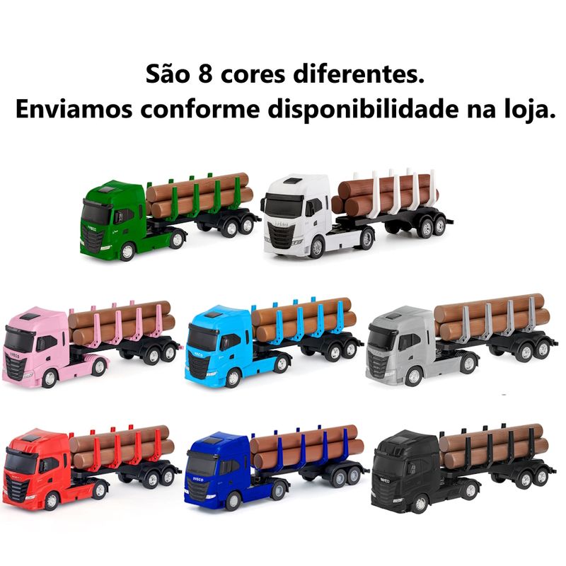 Caminhão de Brinquedo Iveco Hi-Way Basculante e Tora de Madeira