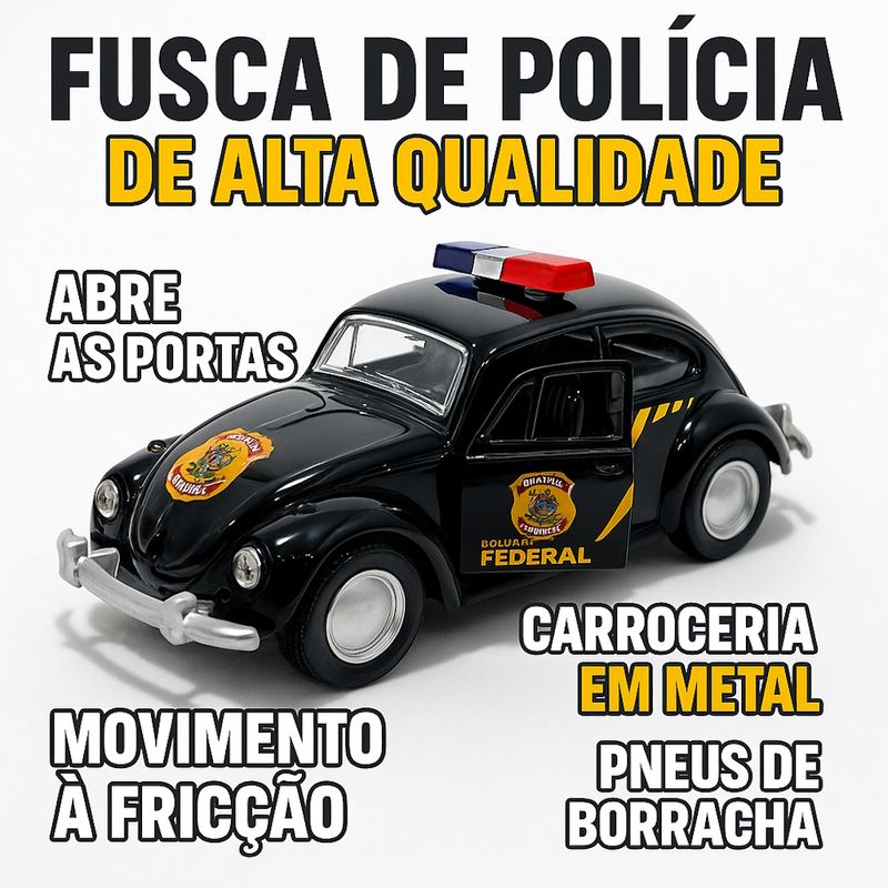 Carrinho De Ferro Miniatura Fusca Policia Federal Nacional à Fricção com Abertura de Portas