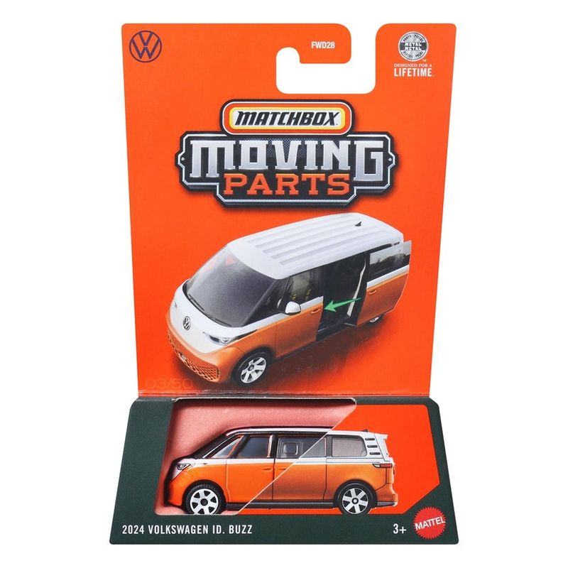 2024 Volkswagen ID. Buzz Marca do produto: Matchbox - Mattel. Coleção: Moving Parts Escala: 1/64 Material: Miniatura de Metal com partes de plástico.