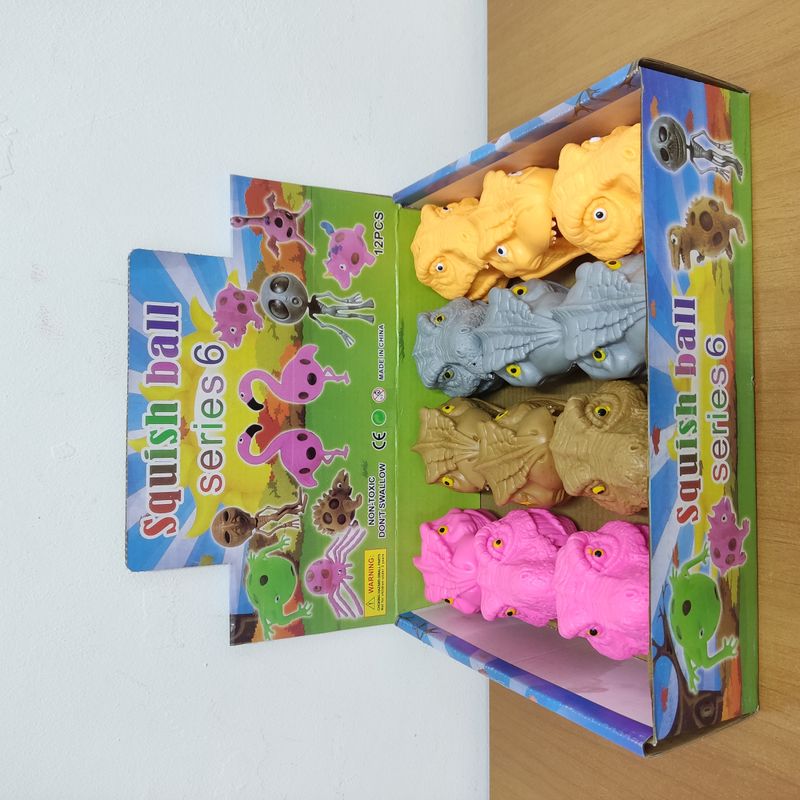 Caixa Expositor 12 Brinquedos Dinossauro de Apertar Squishy Macia Fofinha Antiestresse Puxa E Estica Para Lembrancinha de Festa Infantil Sacolinha Surpresa