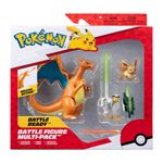 Representando os tipos Normal, Lutador e Fogo. As figuras apresentam acabamento fiel ao visual da série animada Pokémon, com detalhes autênticos que destacam expressões, posturas e efeitos de batalha, como o disparo de míssil de fogo do Charizard. A figura de Eevee é compatível com os acessórios Clip N Go e Carry Case Playset (vendidos separadamente).