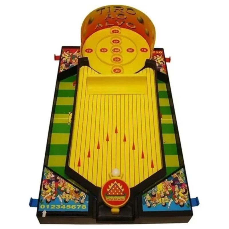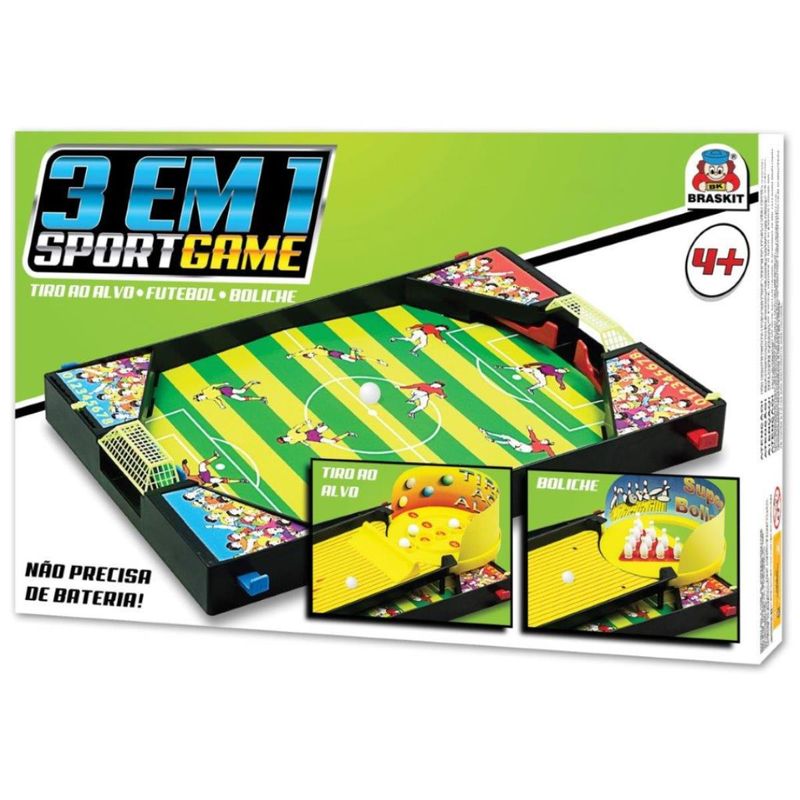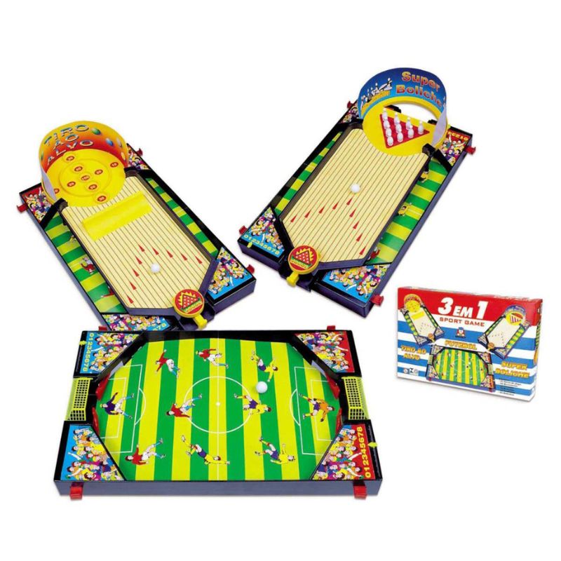 Um jogo de competição onde os jogadores irão exercitar as habilidades através da prática de pontaria e precisão de movimentos. Paixão nacional, o futebol game é fácil de carregar podendo levá-lo a qualquer lugar.Faça já suas competições mais emocionantes com seus amigos! DESCRIÇÃO: Mesa de jogo com alavancas tipo fliperama para futebol e acessórios para jogar tiro ao alvo e boliche.CONTÉM:1 MESA DE JOGO / 2 REDES DE GOL / 5 BOLINHAS / 1 PISTA / 1 RAMPA / 2 CARTELAS / 1 DISCO PARA TIRO AO ALVO / 1 DISCO PARA BOLICHE / 10 PINOS DE BOLICHERECOMENDADO PARA CRIANÇAS A PARTIR DE 4 ANOS.MED. PEÇA C.520 X L. 310 X A.135MM