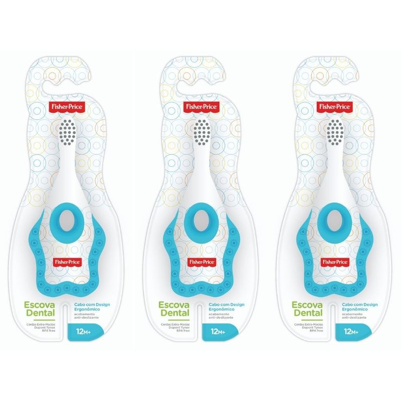 3 ESCOVAS DE DENTES INFANTIL FISHER PRICE 12M+ ANTI-DESLIZANTE
