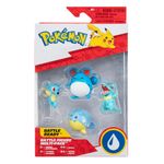 Conjunto com quatro figuras Pokémon de 2 polegadas do tipo Água, incluindo Totodile, Marill, Horsea e Spheal.