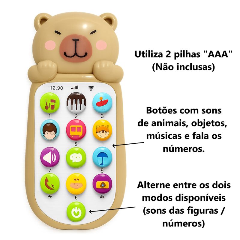 Celular Infantil Interativo Capivara Musical Com Luz E Som