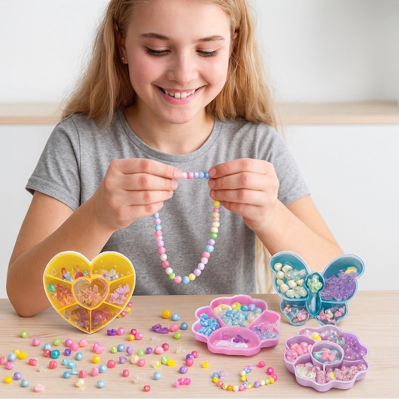 O kit de Miçangas Coloridas no Estojo é ideal para crianças que adoram criar suas próprias pulseiras e acessórios personalizados. Organizadas em um prático estojinho, as miçangas vêm em diversas cores e formatos, facilitando o manuseio e incentivando a criatividade, a coordenação motora e o foco. É uma opção perfeita para presentear, usar em atividades educativas ou oferecer como lembrancinha em festas infantis, unindo diversão e organização em um só produto.