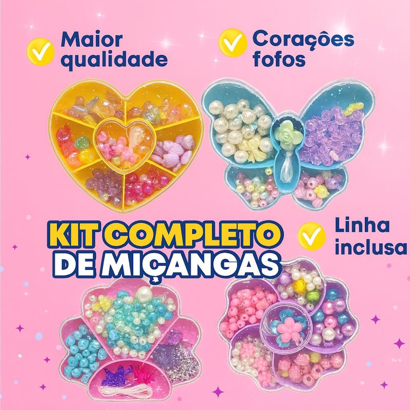 Coleção de Estojos de Miçangas Coloridos no Estojo para Montar Pulseiras e Colares Infantil