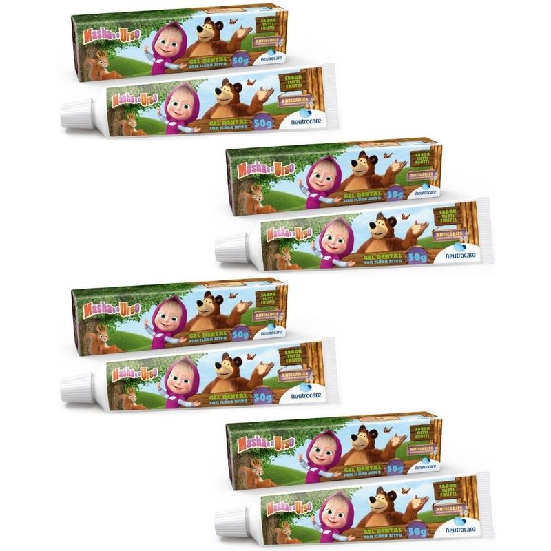4 GEL DENTAL NEUTROCARE MASHA E O URSO TUTTI FRUTTI 50GR