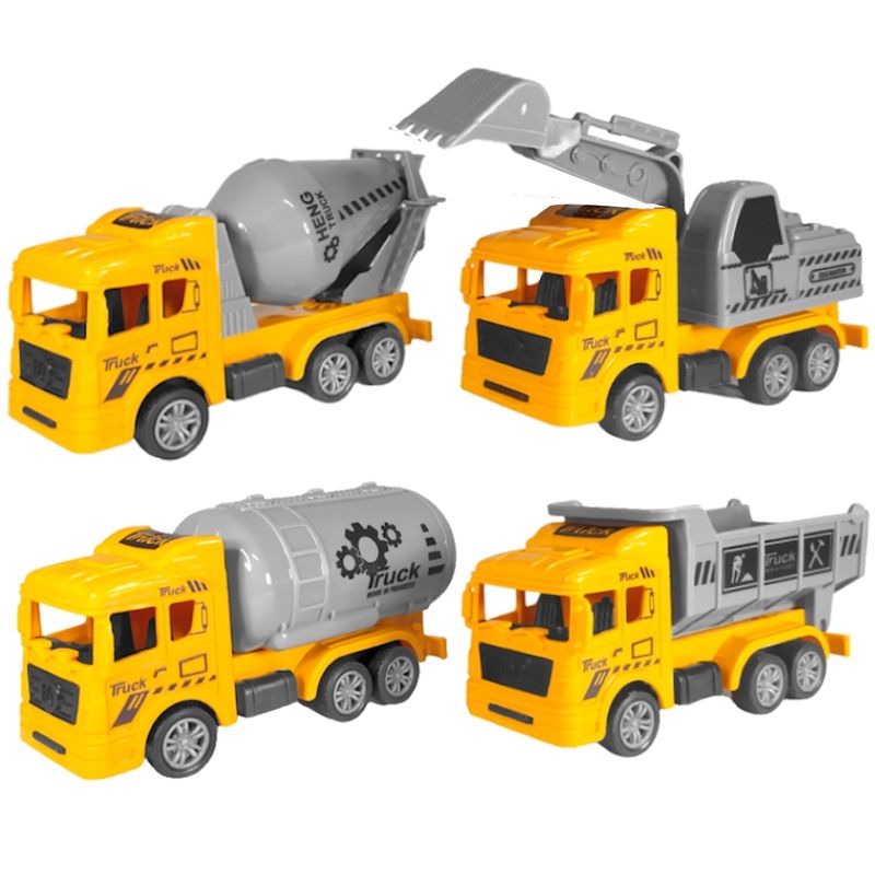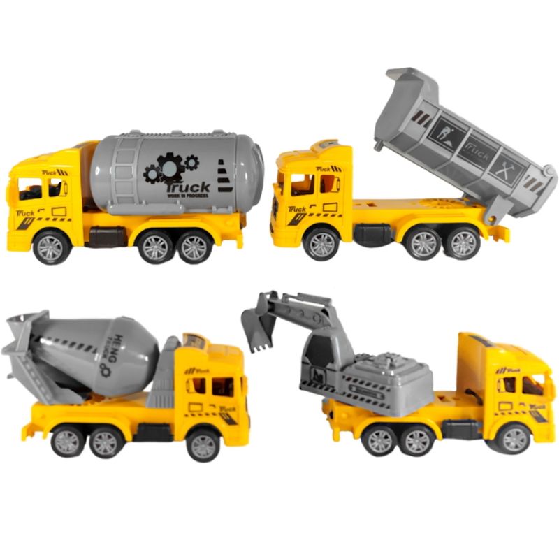 Coleção com 4 Caminhões de Construção com Betoneira Caçamba Basculante Tanque e Escavadeira