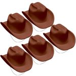 Chapéu de Cowboy Marrom Com Elástico Infantil Para Festas e Fantasias - 5 Unidades