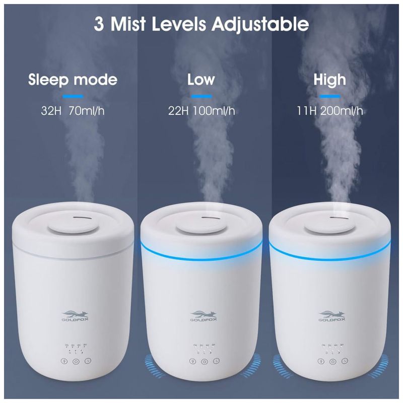 Umidificadores 3 em 1 para quarto Este é um umidificador ultrassônico de névoa fria com luz ambiente para casa e escritório, além de um difusor de óleo essencial. O óleo essencial pode ser adicionado diretamente à água, o que nos permite desfrutar de benefícios terapêuticos.