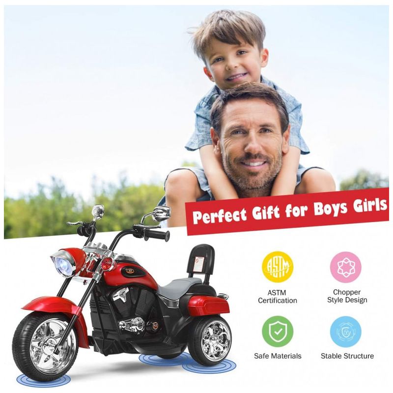 Design de estilo chopper atraente A motocicleta estilo chopper atrairá crianças à primeira vista, cuja aparência realmente legal é superior a outras motocicletas comuns. Além disso, seu design de 3 rodas com baixa gravidade oferece uma experiência de direção estável para evitar quedas. Além disso, o assento para crianças com encosto deve levar o conforto para o próximo nível.
