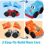 -Os pequenos construtores podem construir grandes corridas e se divertir com este grande caminhão e dois carros de corrida fáceis de construir.
