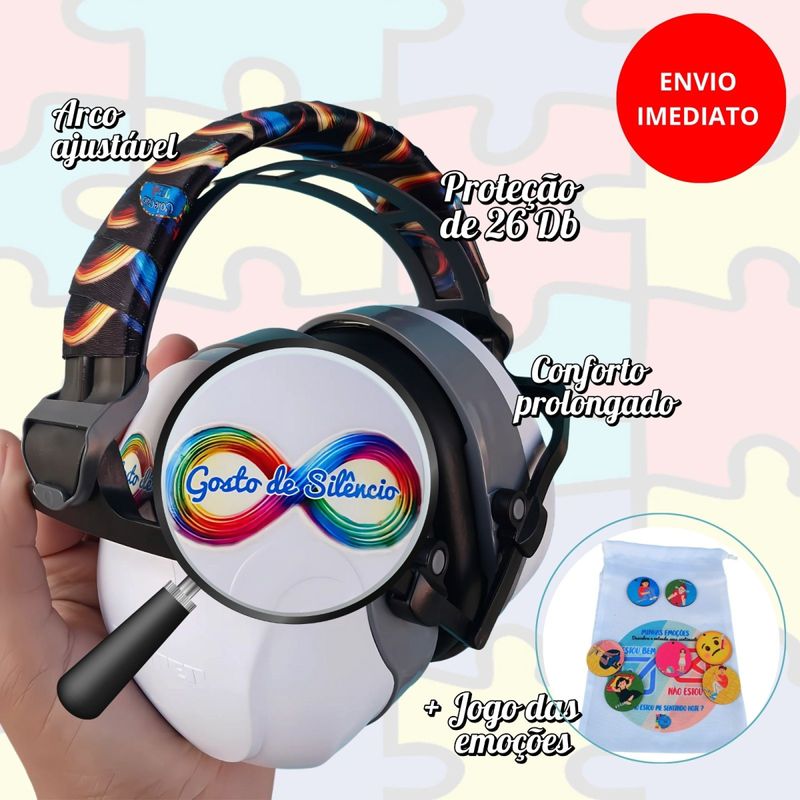 Sabemos que cada detalhe faz diferença. Por isso, além do abafador, você recebe um saquinho personalizado com o Jogo das emoções uma ferramenta lúdica e educativa que auxilia na identificação e expressão dos sentimento, ideal para guardar e transportar o produto com praticidade e carinho, tornando essa experiência ainda mais especial.