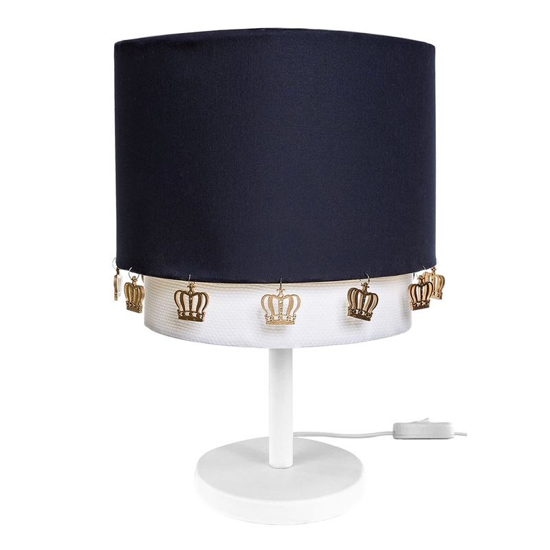 Abajur Tubular Duplo Marinho Coroas Douradas