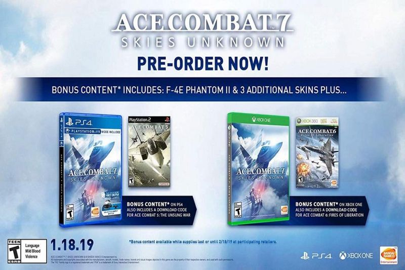 Colocando os jogadores no cockpit dos aviões de guerra mais avançados já desenvolvidos, Ace Combat 7: Skies Unknown oferece a mais feroz experiência de combate aéreo já criada através de visuais fotorrealistas, intensa ação de luta de cães, uma infinidade de aeronaves autênticas e futurísticas para voar enredo, e até mesmo realidade virtual! Alavancando o poder dos consoles de jogos de última geração, o Ace Combat 7: Skies Unknown levará os jogadores para longe com a evolução de seu motor gráfico. Céus repletos de nuvens e paisagens urbanas altamente detalhadas aumentam a sensação de velocidade incomparável e preparam o cenário para as batalhas aéreas mais envolventes nos 20 anos de história da franquia. Ace Combat 7: Skies Unknown fornecerá um arsenal de super-armas ultramodernas e inimigos formidáveis pelos quais a série é conhecida. - Inovação no Céu: Nuvens de tirar o fôlego, aliadas a aeronaves altamente detalhadas e cenários fotorrealistas, fazem deste o mais emocionante combate Ace até hoje.