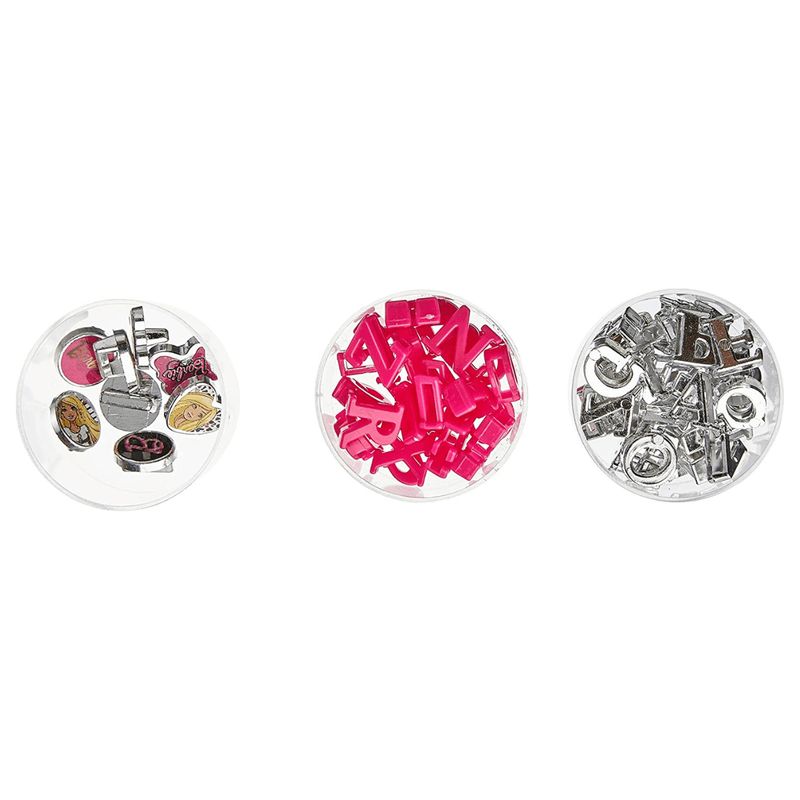 As meninas vão arrasar com os Braceletes Glamourosos da Barbie. São diversas combinações fashions e ainda contém exclusivos pingentes e letras prateados e rosa metálico.