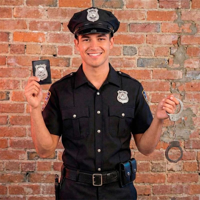Assuma o comando da festa e imponha autoridade com o Kit de Acessórios Policial Unissex! Versátil e estiloso, este conjunto é a escolha perfeita para homens e mulheres que desejam montar uma fantasia clássica de polícia de forma rápida e prática para o Carnaval, Halloween ou festas temáticas. O kit é composto por dois itens fundamentais para a caracterização. O Quepe (Chapéu) é confeccionado em tecido preto leve, possui uma aba de vinil brilhante e destaca-se pelo emblema prateado "Special Police" na frente; seu tamanho é democrático, servindo confortavelmente em cabeças com até 63 cm de circunferência. Para completar, o par de Algemas é feito de plástico metalizado resistente que imita metal real, sendo leve, seguro (não machuca) e totalmente funcional com chaves inclusas.Kit Prático 2 Peças Chapéu Estiloso com brasão prateado "Special Police" Algemas Seguras, não machucam os pulsos Com chaves inclusas Atenção: Roupas, distintivos de peito e botas não estão inclusos.