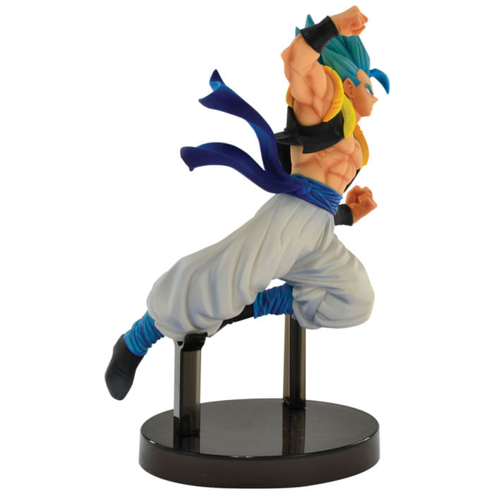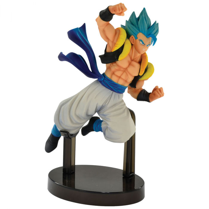 Gogeta possui o corpo de Goku na qual ele é alto e magro, mas ele tem as características faciais de Vegeta.