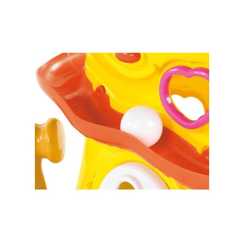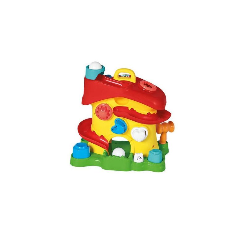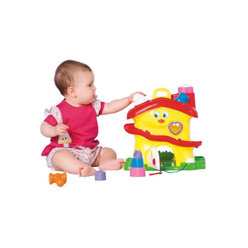 Activity House Tateti Uma linda casinha com atividades divertidas e didáticas para o seu bebê! A Activity House é um brinquedo didático para crianças a partir de 18 meses. Vem com bloquinhos coloridos que ensinam a distinguir cores, formas e tamanhos. A portinha abre e fecha com chave para que a criança possa pegar os bloquinhos de volta. A brincadeira fica mais divertida com a bolinha que entra pela chaminé e cai por um tobogã em volta da casa. O brinquedo ainda vem com um martelinho que impulsiona a bolinha e afina a coordenação motora do bebê. Este produto faz parte da linha de brinquedos educativos da Tateti. As cores podem variar de acordo com o estoque