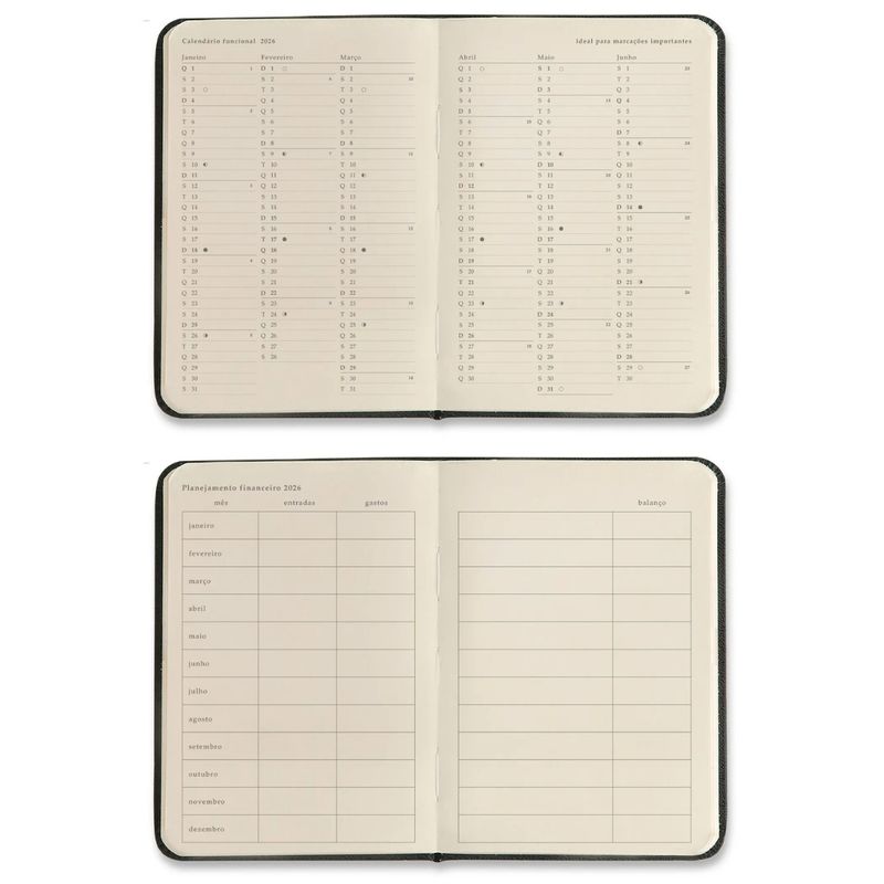 No início de todas as agendas, temos duas duplas para marcações importantes do ano,como aniversários, eventos, datas importantes. Uma visualização anual perfeita em suas mãos.