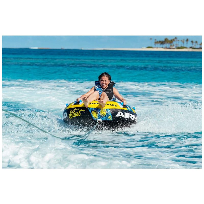 1 tubo para passeios de barco e esportes aquáticos Kwik Connect Kwik Connect patenteado da Airhead para conexão de corda rápida e fácil Parcialmente coberto Cobertura parcial de nylon resistente Válvula de segurança de velocidade Para inflar e desinflar rápido e fácil Alças acolchoadas Não Alças acolchoadas deslizantes proporcionando conforto e estabilidade