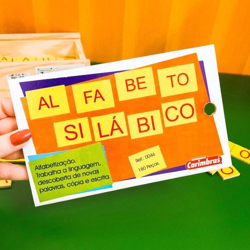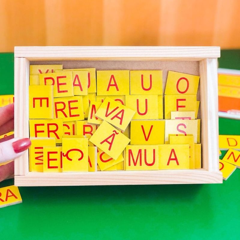 ALFABETO SILABICO DE MADEIRA 180 PEÇAS CAIXA COM TAMPA