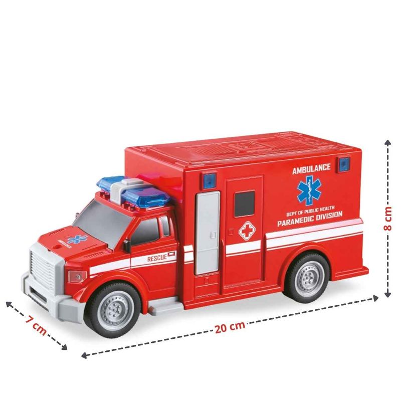 A ambulância de brinquedo com fricção contém luzes e sons realistas. Basta empurrar para ativar o movimento. Estimula a imaginação e garante a diversão. Ideal para pequenos heróis do resgate!