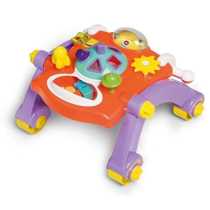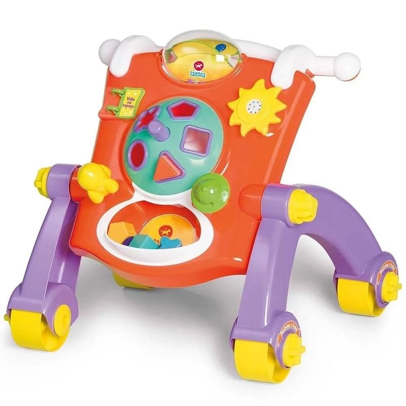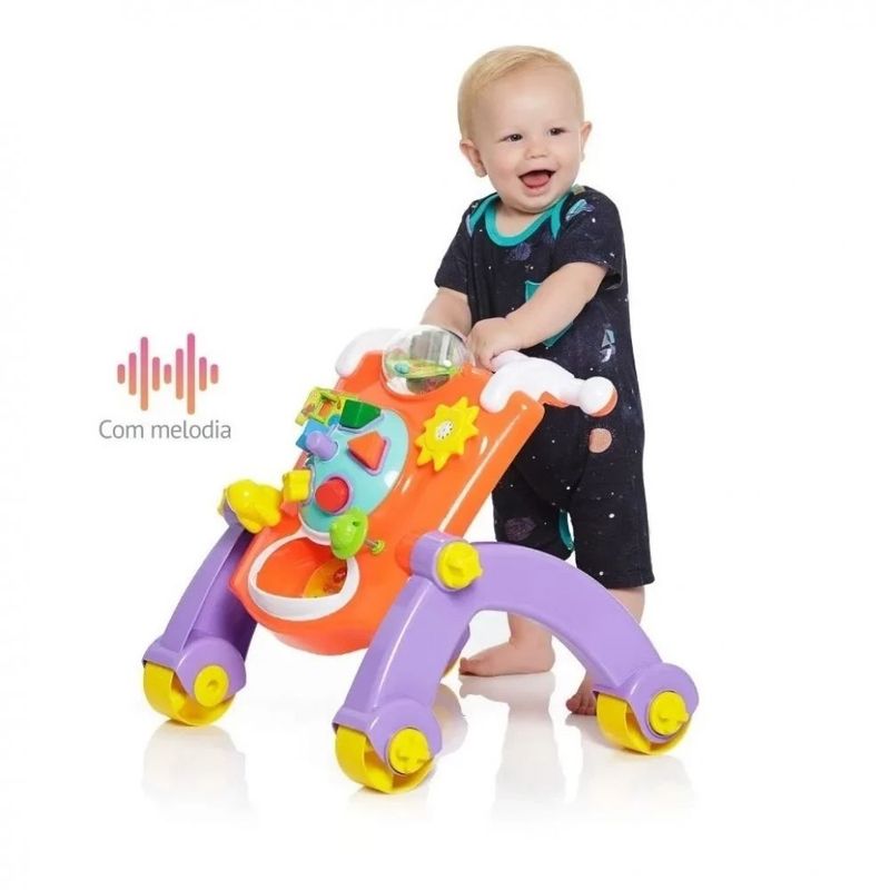 3 brinquedos em 1! Andador, painel ou mesa didática! Acompanha uma esfera giratória, formas para encaixar, música e peças divertidas para os pequenos se divertirem além de possuir trava na rodinha! Como andador, estimula seu bebê a dar os primeiros passos com segurança para caminhar. Como painel ou mesa, diverte e ensina o bebê com atividades didáticas.
