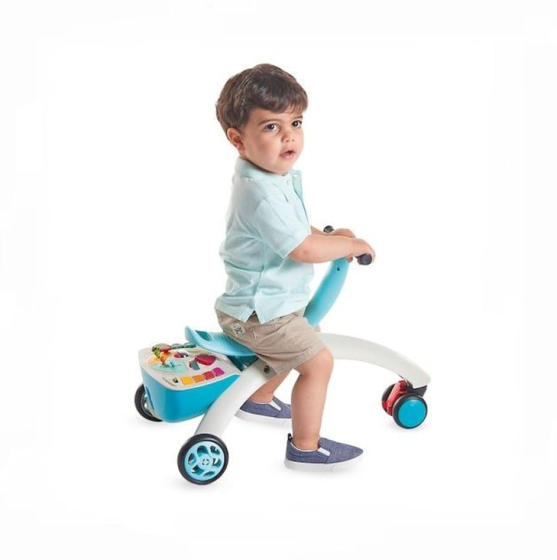 O Andador e Triciclo 5-em-1 da Tiny Love possui todos os principais recursos para mobilidade em um único produto, além de um mecanismo de controle de velocidade para garantir que o bebê tenha segurança em seus primeiros passos, luzes e sons em um painel eletrônico com atividades. Cresce com o bebê e pode ser usado entre os 6 e os 36 meses.