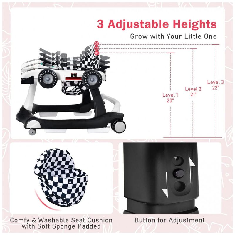 Altura e velocidade ajustáveis para crescer com o seu pequeno, este andador de bebê multiuso vem com 3 alturas ajustáveis para que você possa ajustá lo de acordo com a altura de mudança do seu bebê. Além disso, a velocidade de 2 rodas traseiras pode ser ajustada com base na força do seu filho.