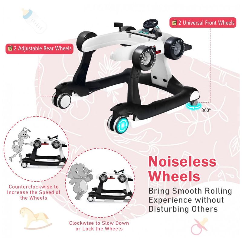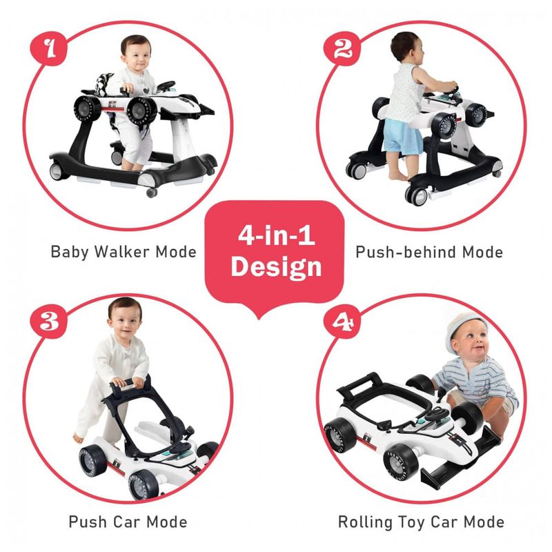 Andeador de bebê multiuso 4 em 1 este caminhante de atividade para bebês apresenta um design 4 em 1, que inclui o modo de andar de bebê, o modo de empurrar para o bebê, o modo de empurrar o carro e o modo de carro de brinquedo rolante, atendendo muito às necessidades do seu filho em diferentes estágios. É adequado para bebês de 6 a 18 meses de idade.