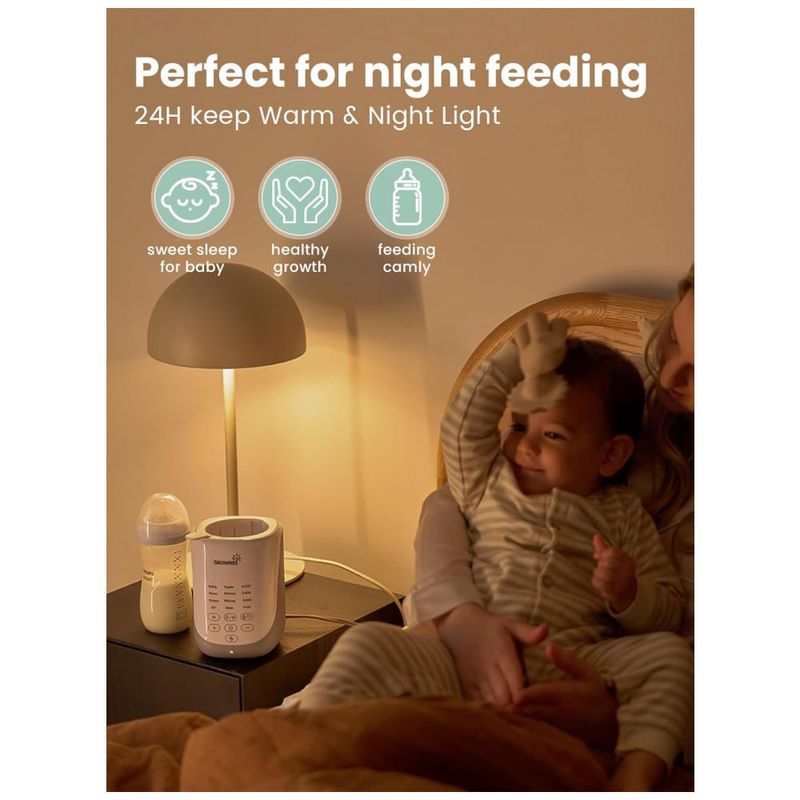 Diga adeus ao antigo aquecedor de mamadeira que nunca atinge a temperatura certa. Apresentamos o aquecedor de mamadeira patenteado GROWNSY, que eleva automaticamente a mamadeira após o aquecimento, garantindo sempre a temperatura ideal e eliminando as suposições. Aquece 120ml de leite em 25 minutos, preservando os nutrientes com tecnologia suave de banho-maria que evita o superaquecimento, favorecendo a digestão e crescimento do seu bebê. Possui função de manter aquecido por 24 horas, perfeito para alimentações noturnas e conforto imediato do bebê. Aquecimento Rápido, Descongelamento Suave, Manter Aquecido por 24 horas, Vaporização, Aquecimento de Alimentos, Elevação Inteligente, Temporizador, Luz Noturna, Cesto Antiescaldo e Função de Memória. Compatível com todas as marcas de mamadeiras e capaz de aquecer todos os tipos de alimentos para bebês. Inicie em apenas três passos e conclua o processo de aquecimento do leite em 35 minutos através de um aquecimento em banho-maria. A função de memória simplifica o início, reduzindo a operação de três etapas para um único botão. O aquecedor de mamadeira GROWNSY foi escolhido por mais de 9 milhões de pais. Com nossa missão de cuidar e nutrir cada etapa do crescimento, continuamos a apoiar mais famílias. Também é um ótimo presente de chá de bebê para novas mães entre parentes, amigos e vizinhos.