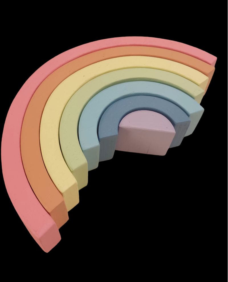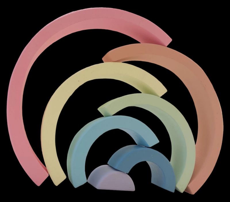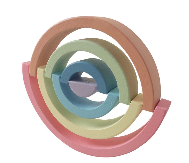 O arco-íris de madeira é um material utilizado pela pedagogia Waldorf para fomentar a criatividade das crianças. E, cada vez mais, está sendo utilizado pelos pais como elemento de jogos sensoriais inspirados no método Montessori.