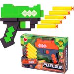 Lança Dardos Pixel Gun Infantil 5 Dardos de Espuma com Ventosa Brinquedo Pixelado estilo Minecraf