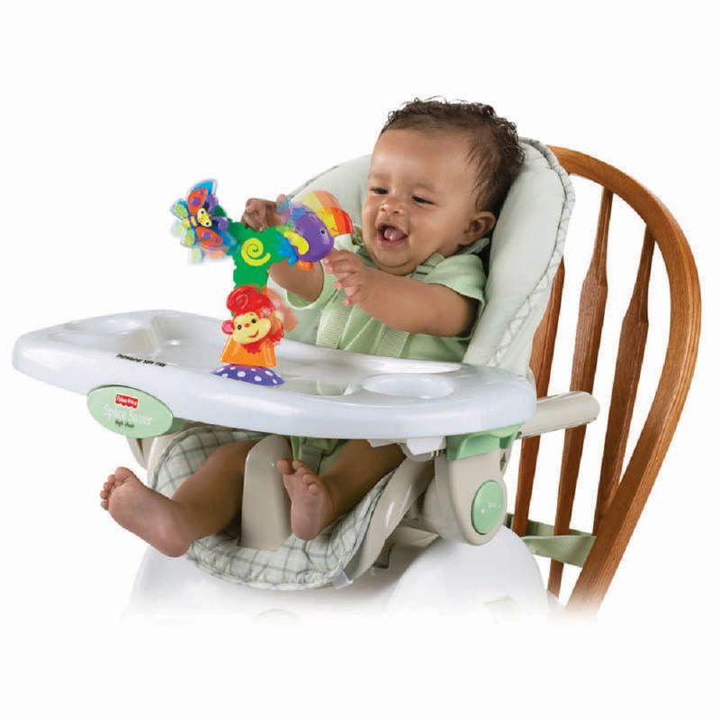 a Árvore Ventosa Floresta Encantada Tem 3 Personagens Que Giram e Rodopiam Conforme o Bebê Bate No Brinquedo e Move As "pás do Moinho". Além do Lindo Tucano Colorido, a Borboleta Tem Chocalhos e o Macaquinho Fica Girando.