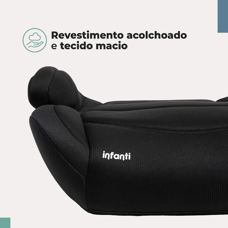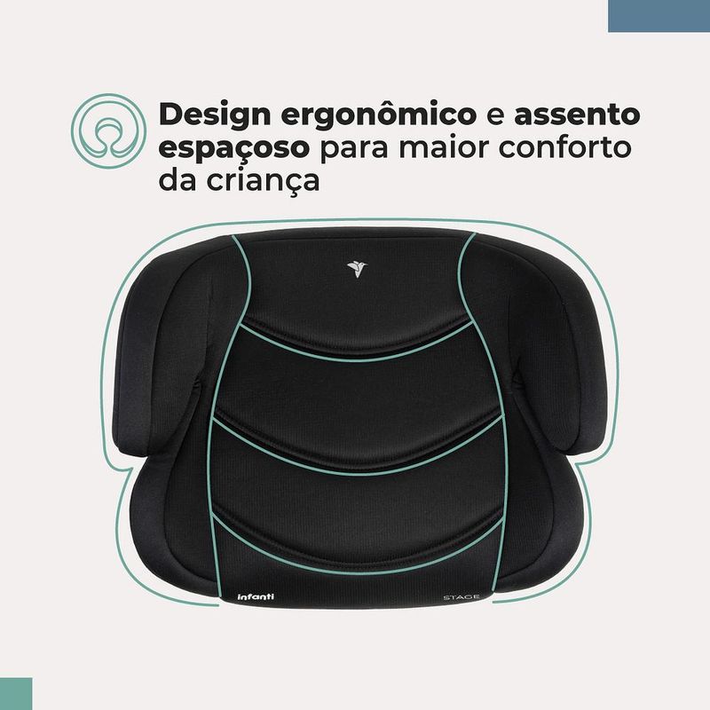 Um assento de elevação pensado para crianças de 15 a 36 kg, que oferece segurança, conforto e uma experiência cheia de cuidado para toda a família. Os bebês crescem, e mesmo assim a preocupação com segurança não diminui. Pensando nisso, apresentamos o Booster Stage: um assento de elevação projetado para acolher crianças de 15 a 36 kg com o cuidado e a segurança que elas merecem. Conheça suas características: -Design ergonômico e assento espaçoso para maior conforto da criança.