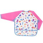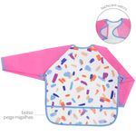 AVENTAL BABADOR COM MANGA LONGA ALIMENTAÇÃO BEBES IMPERMEAVEL PEGA MIGALHAS Cor:Pincelada Rosa