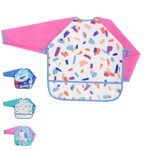 BABYUTENSILIOS PARA ALIMENTAÇÃO DO BEBEBABADORAVENTAL BABADOR COM MANGA LONGA ALIMENTAÇÃO BEBES IMPERMEAVEL PEGA MIGALHAS Cor:Pincelada Rosa