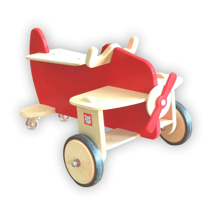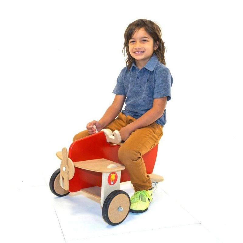 O Avião Bate Pé em Madeira possui rodas que deslizam de forma suave com impulso dos pés, trabalhando a coordenação motora, o equilíbrio dos pequenos e a superação de limites.
