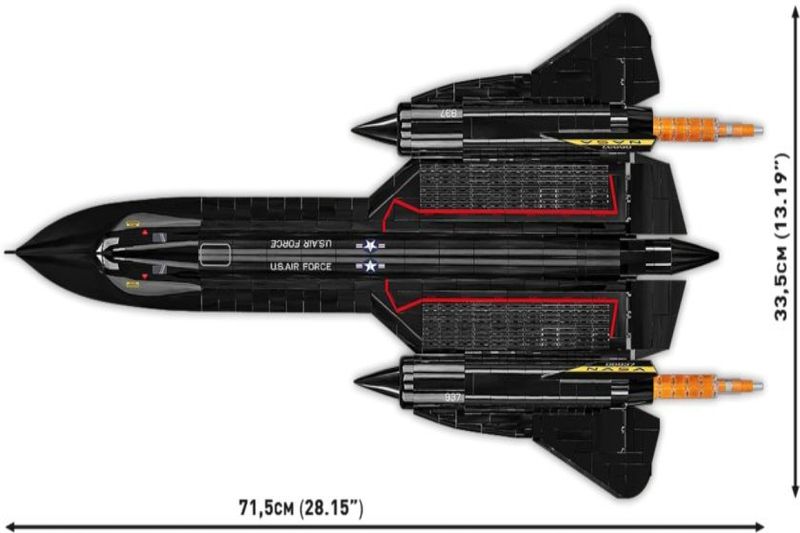 Lockheed SR-71 Blackbird - Executive Edition #5890 Marca do produto: Cobi (Made in Poland). Peças: 1424 O SR-71 Blackbird é uma das máquinas mais icônicas da história da aviação, inspirando admiração e respeito há décadas. Agora você pode levar essa lenda para sua casa construindo este modelo exclusivo em escala 1:48!Foi a aeronave mais rápida já introduzida em serviço operacional na Força Aérea. Fo iprojetada na virada das décadas de 1950 e 1960 para a CIA, mas também foi operada pela NASA e pela USAF.O SR-71 é uma aeronave de reconhecimento estratégico de longo alcance, atingindo uma velocidade de Mach 3,5 e um teto de 26.000 metros, tornando-o indetectável para os sistemas de defesa da época. Um total de 32 SR-71 foram construídos. Devido aos altos custos de manutenção desta aeronave e à infraestrutura necessária para sua operação, ela foi retirada de serviço no final da década de 1980. Agora, o papel da aeronave SR-71 foi assumido por satélites de reconhecimento e drones. O último voo deste tipo de aeronave ocorreu em 9 de outubro de 1999.Construa uma lenda da aviação e o SR-71 Blackbird se tornará o orgulho da sua coleção e um monumento à conquista tecnológica! A COBI está no mercado há mais de 30 anos e todos seus produtos são feitos na Polônia. Todos os produtos COBI são compatíveis com outras marcas. As coleções são todas regularizadas e licenciadas pelas marcas.
