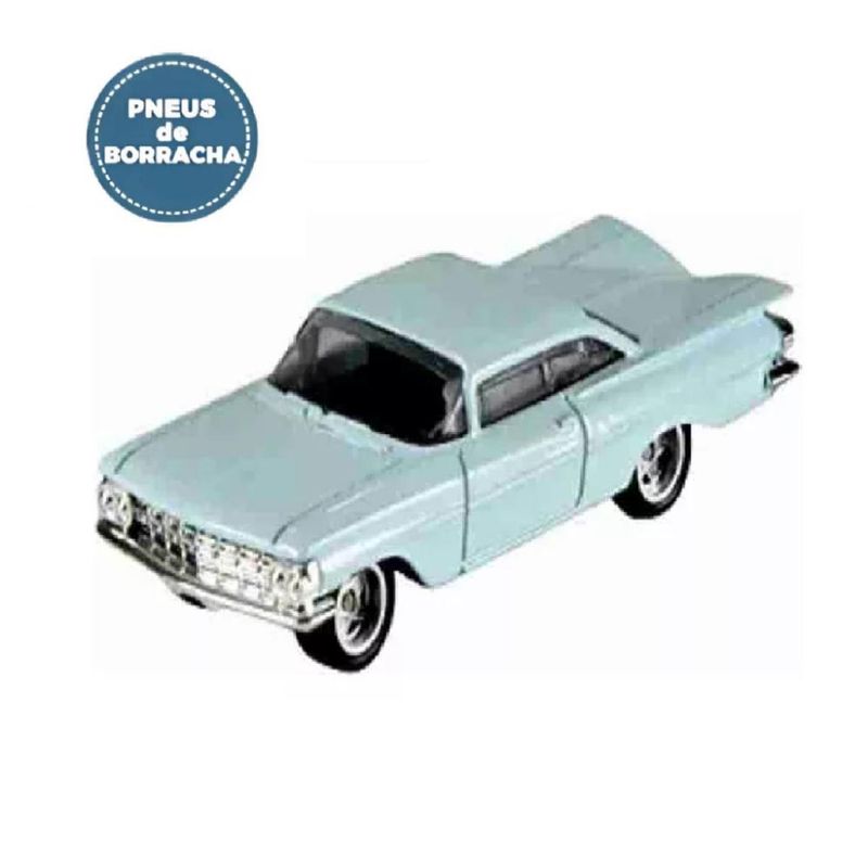 Miniatura de carro Impala 1959 na escala 1:64. Produzida em metal com partes plásticas, apresenta alto grau de detalhamento, pneus emborrachados.nnIdade recomendada:2-4 anos;Composição/Material:Metal e Plástico;Funciona com pilhas:Não;Brinquedo com luz:Não;Brinquedo com som:Não;Dimensões:15,7x4x12 cm;Peso:0,051 kg;Código de Barras:7894383112749;Garantia do Fornecedor:3 Meses contra defeito de fabricação;