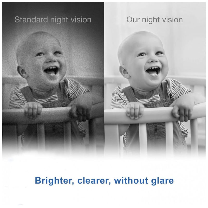 Visão noturna infravermelha invisível automática Quando chega a hora de dormir, a câmera muda para o modo de visão noturna automaticamente sem nenhuma luz para perturbar seu filho, permitindo que você fique de olho em seu bebê no escuro de qualquer lugar da casa.