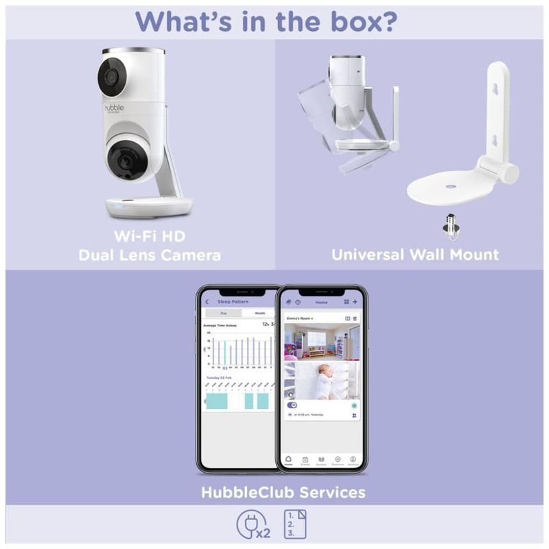 Os pais podem assistir à transmissão ao vivo pelo aplicativo HubbleClub em seus smartphones, permitindo que permaneçam conectados não importa onde estejam e recebam notificações de atividade quando movimento ou som forem detectados. O aplicativo HubbleClub está disponível gratuitamente para iOS e Android e é totalmente compatível com o monitor Dual Vision, oferecendo aos pais a capacidade de visualizar a transmissão ao vivo, capturar imagens e vídeos valiosos diretamente da unidade da câmera e receber notificações de atividade quando movimento ou som são detectados.