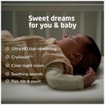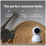 O monitor conta com recursos como lullabies (canções de ninar) e ruído branco, sensores de temperatura e umidade, detecção de movimento e ruído, e compatibilidade com redes de dupla banda (2.4GHz e 5.0GHz), oferecendo muito mais do que apenas uma câmera de monitoramento para bebês.